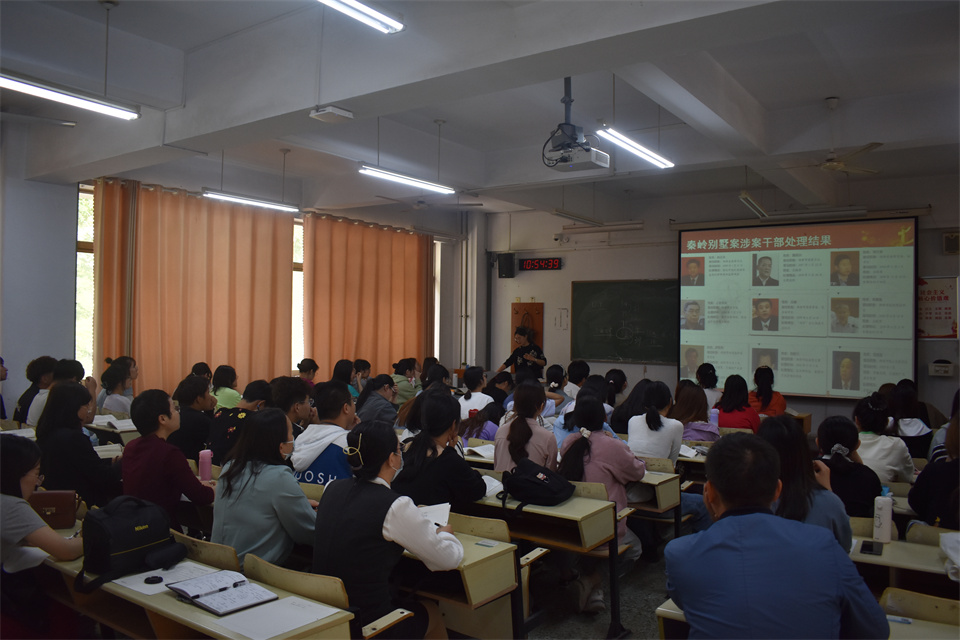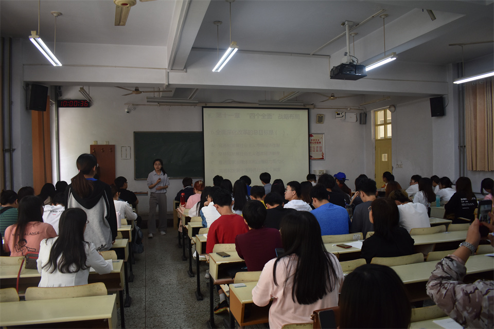 王丽萍讲授《毛泽东思想与中国特色社会主义理论体系概论》中的全面依法治国专题,通过梳理全面依法治国的历史脉络,以充实的内容,广泛的知识面,并结合实例分析,展现了课程的学术性,教学理念先进,教学效果良好。李香玉讲授《毛泽东思想与中国特色社会主义理论体系概论》中的全面从严治党专题,以新时代党的建设总要求为切入点,阐述了为什么全面从严治党永远在路上的问题,注重理论联系实际,有效组织师生互动,深入浅出,娓娓道来,教学效果显著。许香林讲授《毛泽东思想与中国特色社会主义理论体系概论》中的中国特色社会主义法治道路专题,以“五个坚持”条分缕析,阐释了什么是中国特色社会主义法治道路以及为什么要坚持中国特色社会主义法治道路的问题,引起员工共鸣,实现了良好的教学效果。刘志美讲授《毛泽东思想与中国特色社会主义理论体系概论》中的全面依法治国专题,以全面依法治国方略的形成与发展为导入,揭示了全面依法治国的重要性,以及如何全面依法治国等问题,为员工解疑释惑,课堂氛围轻松活跃。