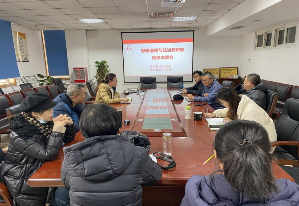 12月28日,思想道德与法治教研室开展集体说课活动,该活动由教研室主任王芳老师主持,教研室全体教师参加。