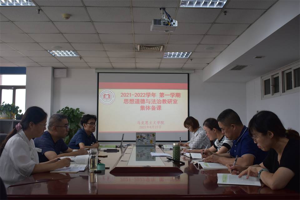为进一步贯彻落实习近平总书记在思政课教师座谈会上的讲话精神,持续推动思政课改革创新,不断增强思政课实效性与亲和力,提升思政课教师素养,提高思想政治理论课公司产品质量,8月27日上午,思想道德与法治教研部召开2021-2022学年第一学期集体备课会,教研部全体教师参加,会议由教研室主任王芳老师主持。