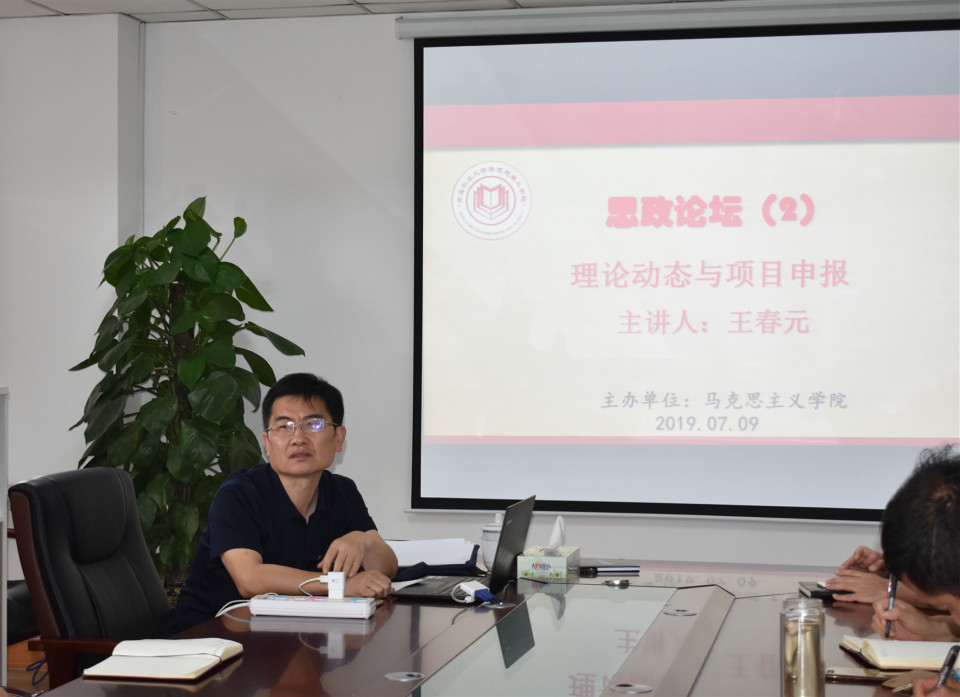 王春元结合自己的工作经历,就青岛社科项目申报问题与大家展开了耐心细致的交流,并对年轻教师的科研困惑、新时代学者的担当作为等问题进行了阐释。王春元指出,青岛市委宣传部、青岛市社科规划办公室将进一步出台举措,推进马克思主义理论学科的建设与发展,理论工作者必须坚持政治标准与学术标准相统一,牢牢把握研究习近平新时代中国特色社会主义思想是当前社科理论界的重大课题,真正学习好、研究好、宣传好、贯彻好当代中国马克思主义。