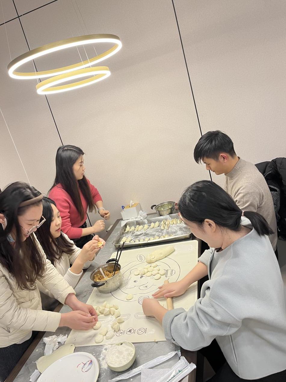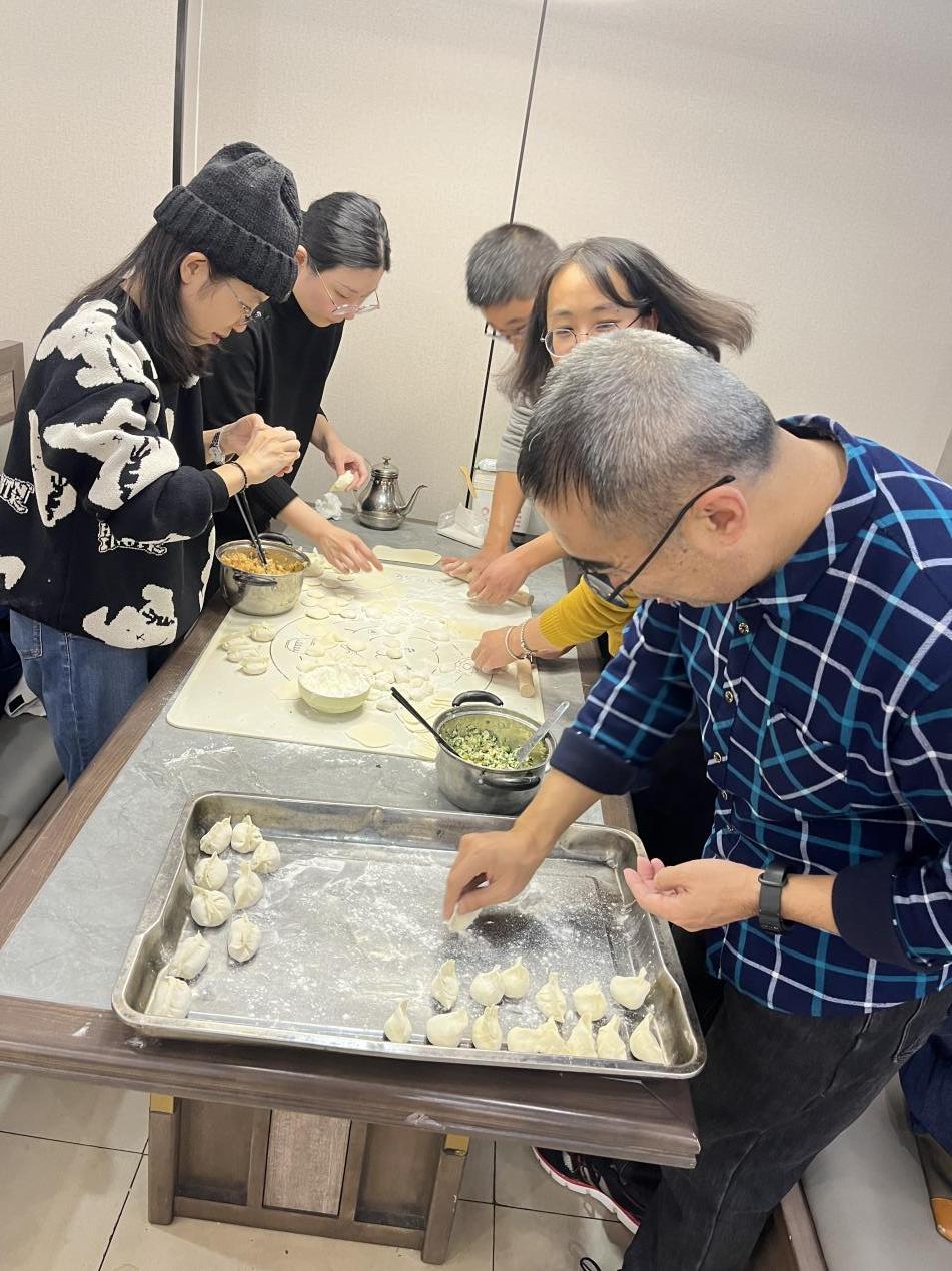 整个活动过程,欢声笑语不断。老师们有序分工协作从调馅和面开始,齐心协力、相互配合,分组完成包饺子任务。有人剁馅料、有人切葱花、有人擀饺子皮,有人准备托盘。大家有说有笑,相互交流包饺子的技巧。在大家的期待中,一盘盘热气腾腾的饺子端上了餐桌,大家吃着自己包的饺子,无比自豪,也感受到了合作的快乐和集体的温暖,老师们互相评价着同事们的劳动成果,分享着一年来的感受,相互送上了新年的祝福,在岁末的笑声中品尝着自己的劳动成果。一盘盘饺子,温情满满,所有老师们都沉浸在欢乐的节日气氛中。